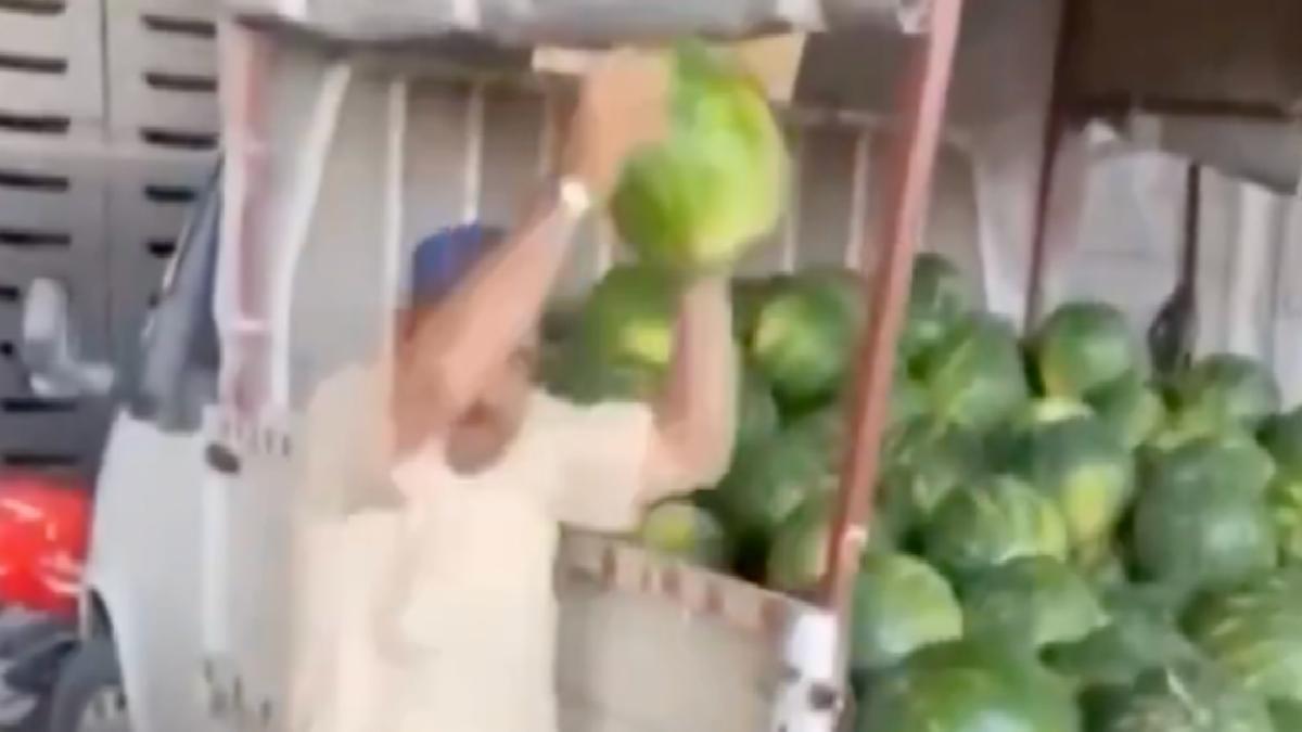 KARPUZLARI SATAMAYINCA YERE ATIP PARÇALADI