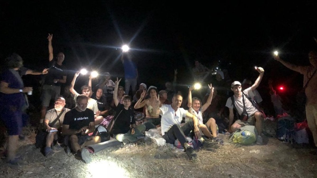 Yaktıkları fenerler ve cep telefonlarının ışıkları altında sık sık “Akbelen Ormanlarını terk etmeyeceğiz” sloganları atan yaklaşık 30 köylü ve çevreci, jandarma tarafından “Eylem ve gösteri kanununa aykırı davranışlar” gerekçesiyle uyarıldı.