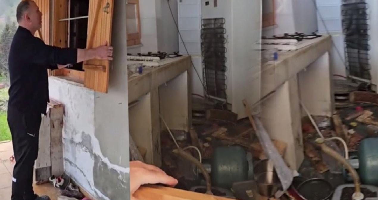 Trabzon’un Araklı ilçesinde ağır kış koşullarının ardından uyanan ayılar, yiyecek arayışıyla Bahçecik Yaylası’na indi. 1800 rakımda bulunan yaylada, Araklı Belediye Başkanı Hüseyin Avni Coşkun Çebi’ye ait evin penceresinden içeri giren ayılar, içerideki kapı, pencere ve eşyalara zarar verdi. Ayılar mutfaktaki malzemeleri de dağıttı.