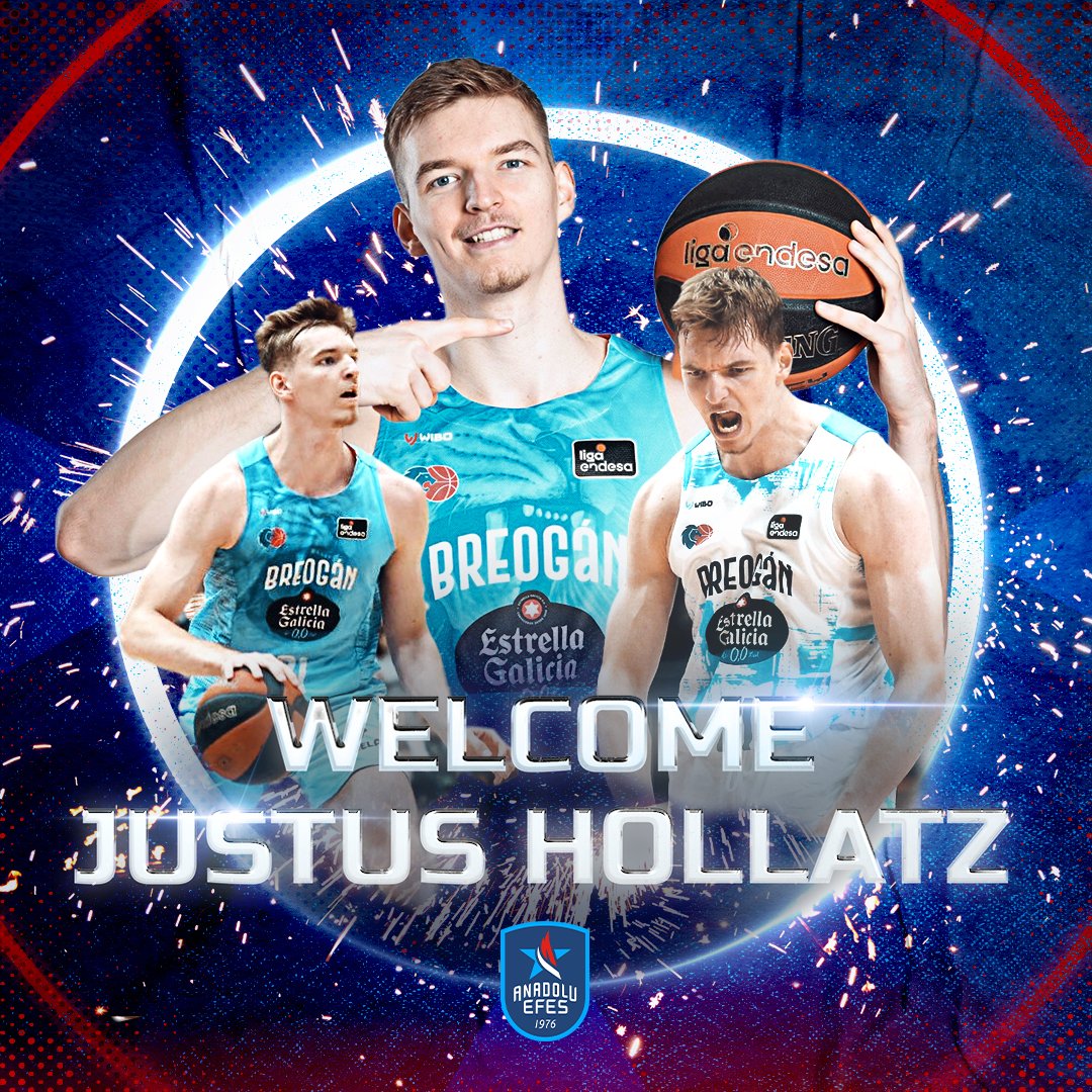 Basketbol spor ligi ekiplerinden Anadolu Efes , geçtiğimiz sezon Rio Breogan’da forma giyen Justus Hollatz ile 1 yıl kiralık olarak anlaşma sağladı.