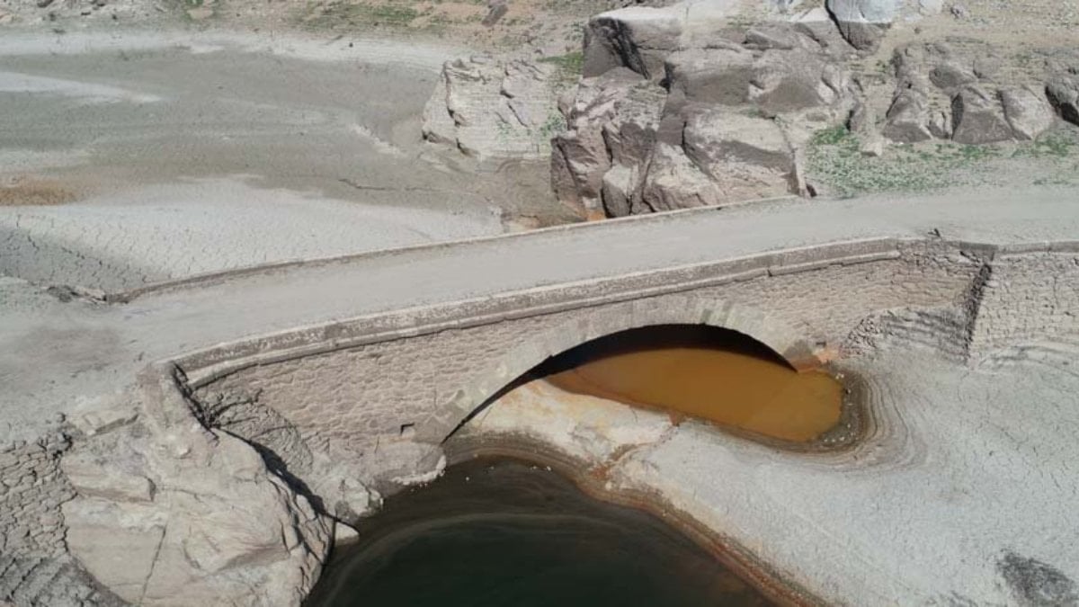 Geçtiğimiz yıl da su seviyesinin düşmesiyle ortaya çıkan Çağlayan Köprüsü, bu yıl da yeniden gün yüzüne çıktı.
