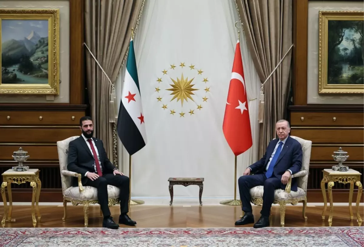 Cumhurbaşkanı Recep Tayyip Erdoğan, Ahmed Şara’yı Cumhurbaşkanlığı Külliyesi’nde karşıladı. Erdoğan ve Şara, merdivenlerde Türkiye bayrağı ve yeni Suriye bayrağı önünde fotoğraf çektirdi. Erdoğan ve Şara, ardından baş başa ve heyetler arası görüşmeye geçti. Görüşmelerin ardından ortak basın toplantısı düzenleneceği belirtildi.