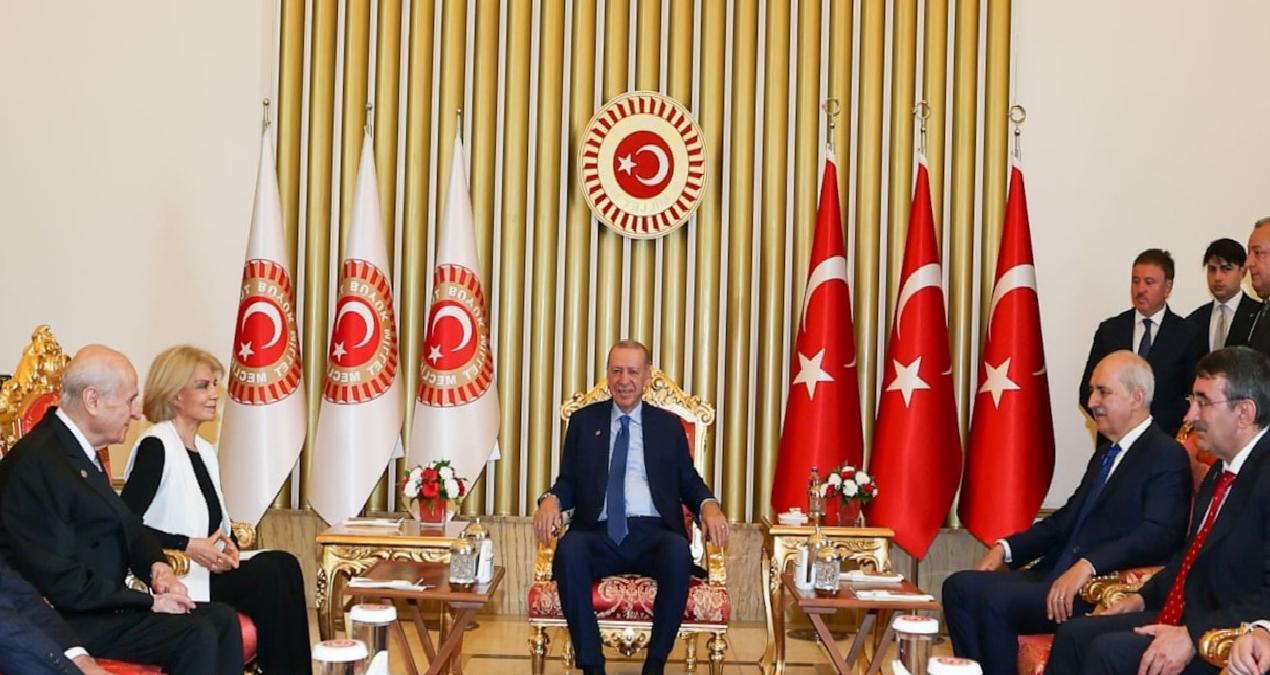 Tansu Çiller’in Erdoğan’ın hemen solunda, Devlet Bahçeli’nin yanında oturması dikkat çekerken; “Çiller siyasete geri mi dönüyor?” sorularına neden oldu.