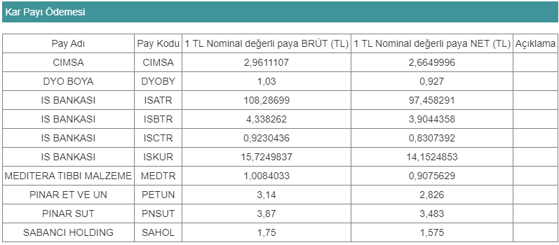 03.04.2023 tarihinden itibaren hak kullanımı işlemleri nedeniyle ilgili hakları kullanılmış olarak işlem görecek payların listesi şöyle: