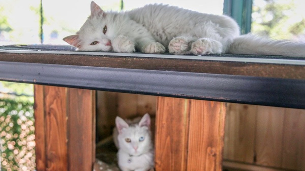 Veteriner hekim gözetimindeki kediler, kendileri için hazırlanan kum havuzu, oyun alanı, bungalov kulübeler, köprü, yapay çim, tünel, tırmanma parkuru, tırmalama ağacı gibi alanlarda vakit geçiriyor.