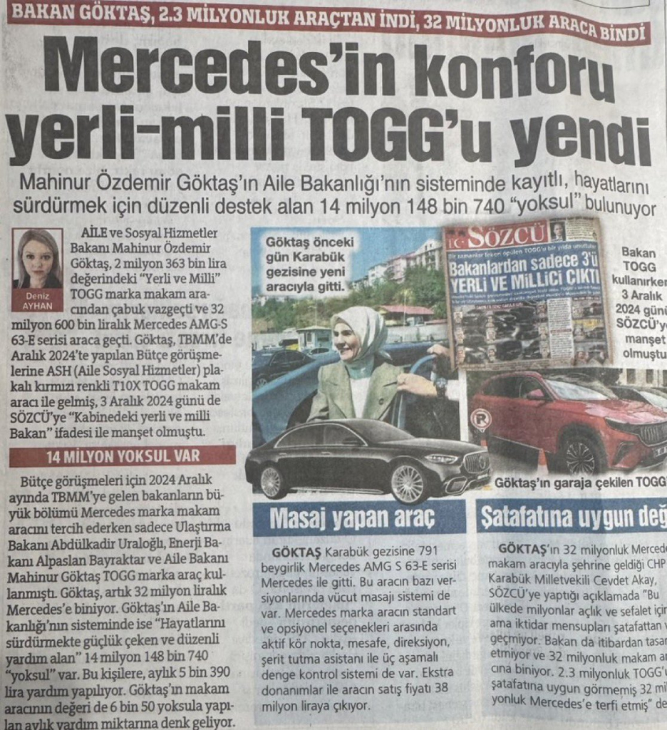 Bir televizyon programına katılan Saadet Partisi Genel Başkanı Temel Karamollaoğlu, Türkiye’de 500 tane Mercedes marka otomobilin makam aracı olarak kullanılmasını eleştirerek, “Türkiye’de eğer 500 Mercedes…