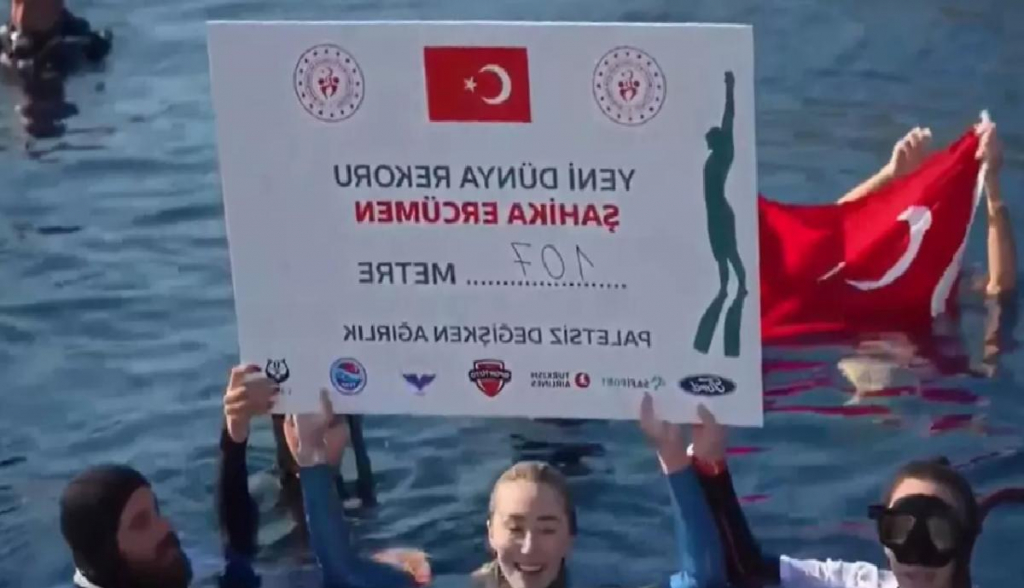 Milli sporcu Şahika Ercümen, Antalya'da 107 metre dalışla kendi rekorunu kırdı.
