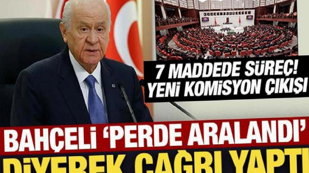 MHP Genel Başkanı Bahçeli Terörsüz Türkiye'ye ilişkin, "Sabır gerektiren bir aşamaya geçilmiştir. Terörsüz Türkiye’nin perdesi aralandı" ifadelerini kullandı. Bahçeli ayrıca TBMM'nin çağrısıyla yeni bir komisyonun da çağrısını yaptı.