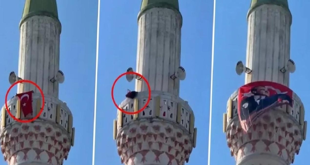 Tekirdağ’da şehit İlker Aykut için düzenlenecek cenaze töreni öncesinde kaydedilen bir görüntü, kentte ve sosyal medyada geniş yankı uyandırdı. Yerel kaynakların aktardığı bilgilere göre, tören hazırlıkları sırasında cami minaresine asılmış Atatürk portreli Türk bayrağı, sela okunmadan hemen önce iki kişi tarafından bulunduğu yerden indirildi
