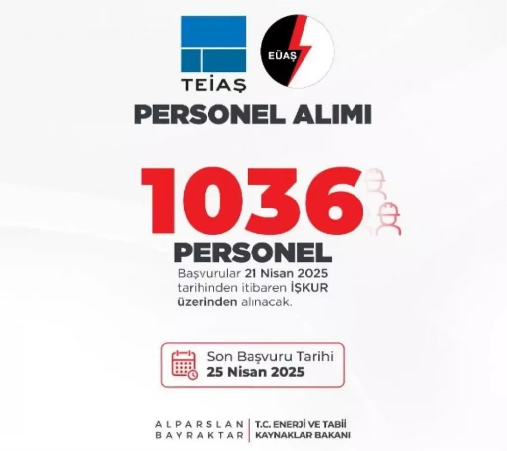 EÜAŞ ve TEİAŞ, toplamda 1036 personel alacağını duyurdu; başvurular Mayıs'ta başlayacak.