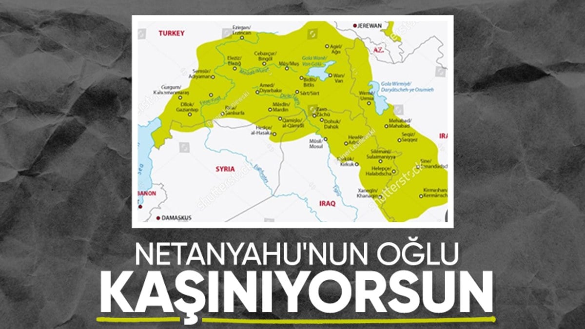 Türkiye’nin toprak bütünlüğünü hedef alan Yair Netanyahu, Instagram hesabından ‘Büyük İsrail’ hedefine uygun olarak, Irak, Suriye ve İran’ın bir kısmını da içeren “4 parçalı sözde Kürdistan” haritasını paylaştı.