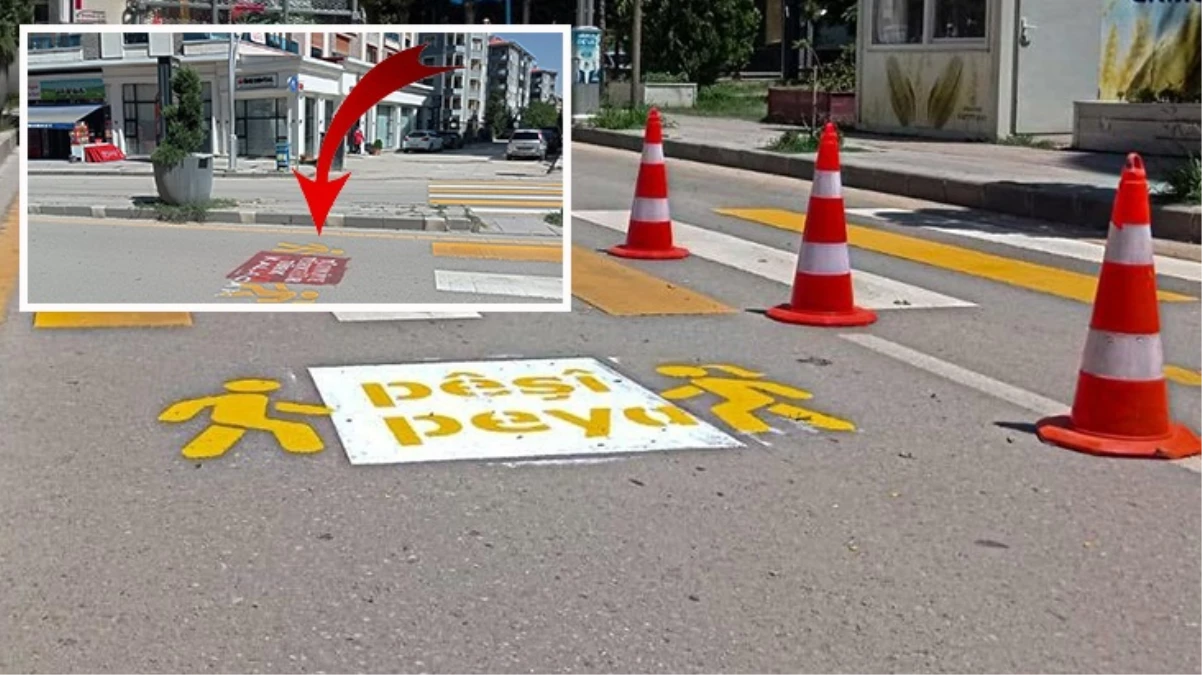 Van Büyükşehir Belediyesi Ulaşım Daire Başkanlığına bağlı Trafik Hizmetleri Şube Müdürlüğü ekipleri, Türkçe’nin yanı sıra “Önce yaya anlamına gelen Kürtçe uyarı yazıları yazdı. Kürtçe uyarı yazılarının üzerine dün gece kimliği belirsiz kişi ya da kişiler tarafından ‘Türkiye Türk’tür, Türk kalacak’ yazıları yazıldı.