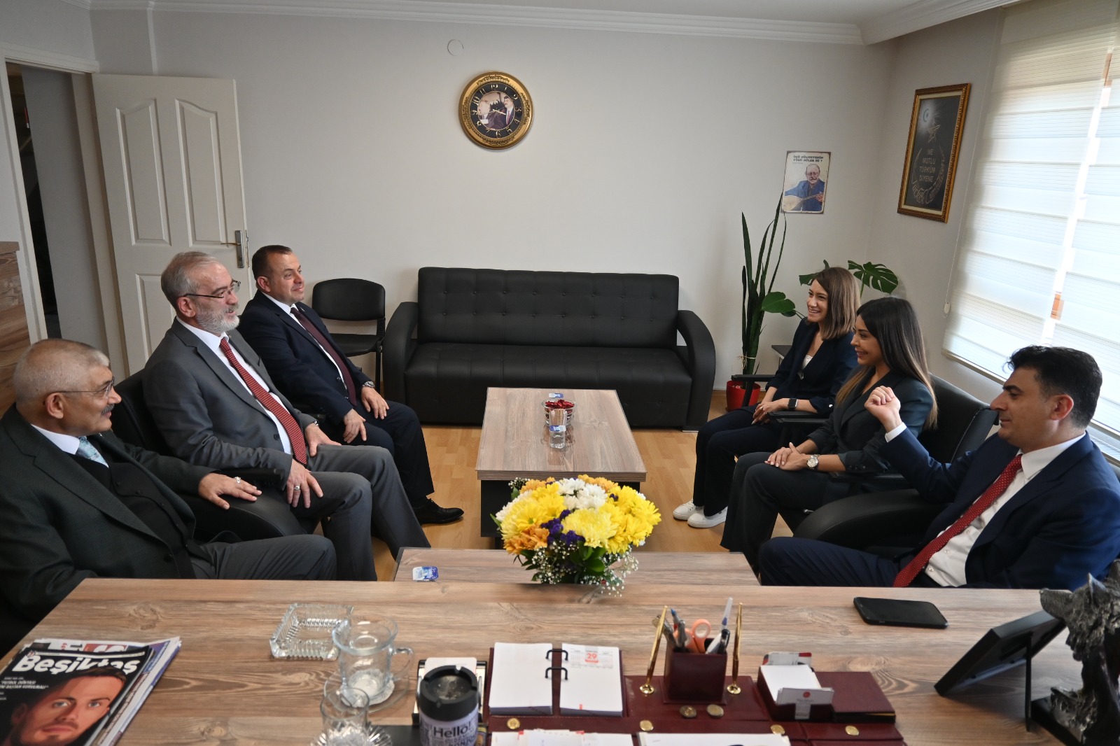 Kurban Bayramı dolayısıyla Zafer Partisi Genel Merkezi’ne bayramlaşmak için gelendiğer partilerin heyetlerini Zafer Partisi Genel Sekreri Cezmi Polat başkanlığında Genel Başkan yardımcıları Seyit Yücel ve Koçak Tükenmez‘den oluşan bir heyet karşıladı.